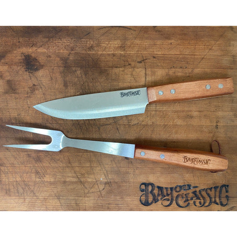 - 12.75" stainless steel slicing knife (7.5" blade, hardwood handle)